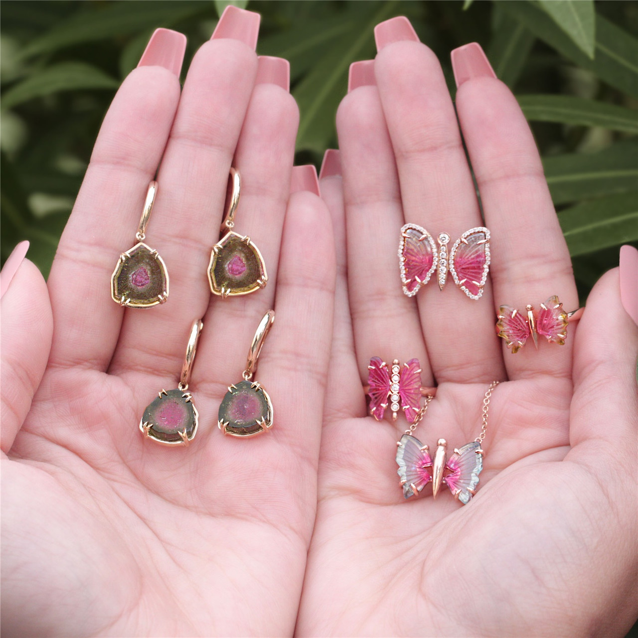 - Custom-designed tourmaline rings, necklaces, and earrings, created to highlight the vivid colors and natural beauty of each stone.